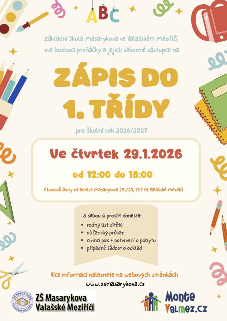 Hledáte pro své dítě školu, kde je zvídavost vítána a kde „pomoz mi, abych to dokázal sám“ není jen heslo, ale každodenní realita? Zveme vás k zápisu do 1. třídy s Montessori programem na ZŠ Masarykova pro školní rok 2026/2027.